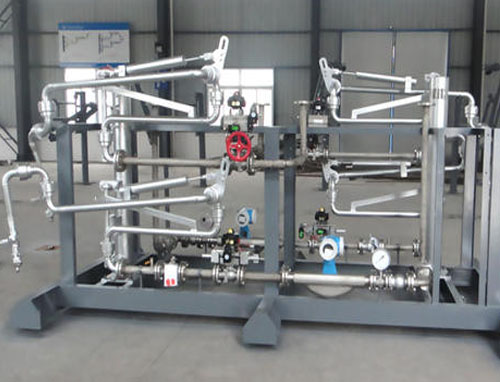 油品定量裝車橇裝組是指將每一個裝車鶴位內(nèi)的儀表和設(shè)備集成在一個專用的框架結(jié)構(gòu)內(nèi),儀表和設(shè)備包括裝車鶴管、流量計、防溢油靜電報警控制器、壓力變送器、裝車流量控制閥、緊急切斷閥,裝車泵、批量控制器等, 只預留工藝連接口和控制電源和通訊接口,這個整體集成部分稱為裝車橇。與傳統(tǒng)的裝車控制系統(tǒng)就地組裝比較,裝車橇可以節(jié)省現(xiàn)場設(shè)計和現(xiàn)場施工量,縮短項目工期,提高裝車控制系統(tǒng)的質(zhì)量。