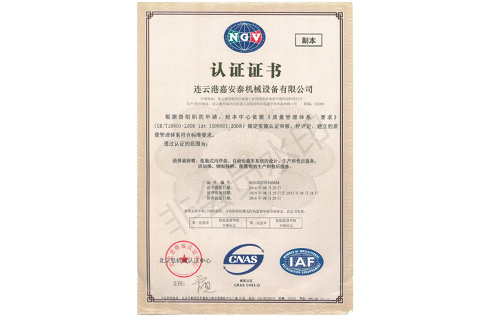 取得了ISO9001質(zhì)量體系認證證書